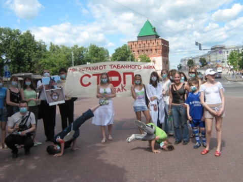- во Всемирный день без табака - 31 мая и во Всемирный день защиты детей - 1 июня в Нижнем Новгороде проведены две массовые акции под названием «МЫ УСТАЛИ ОТ ТАБАЧНОГО ДЫМА!».