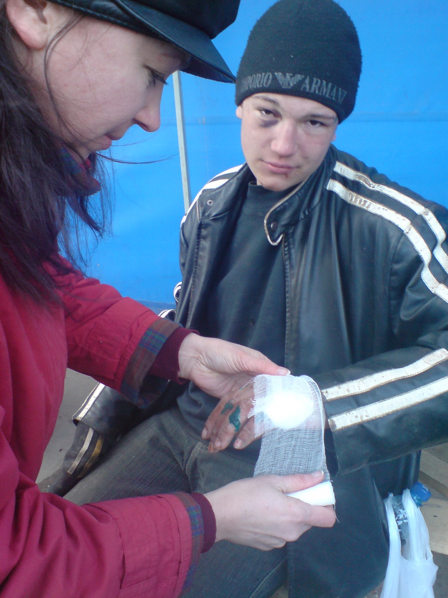 Жизнь на улице очень опасна. Неоднократно приходилось помогать нескольким  ребятам, обрабатывать раны.
